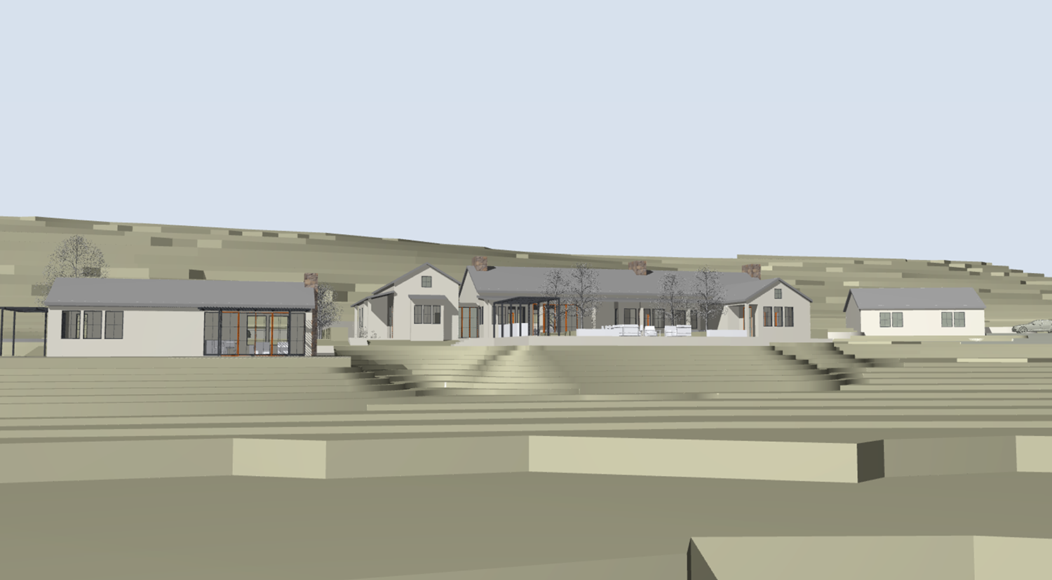 Nestled into the orchard and oriented for views and light, the design has a three-part massing that both properly scales the home and visually distinguishes each part according to its intended use: the central house, a great room that will serve as a hub for social activities orbiting inside and out; the “old house” to the west; and the primary living space to the east. The materials – steel framed windows and doors in the central house, solid wood windows, doors, and ceilings everywhere else – will confer a richness and timelessness that is both simple and elegant, and result in a family heirloom to be passed down to future generations.