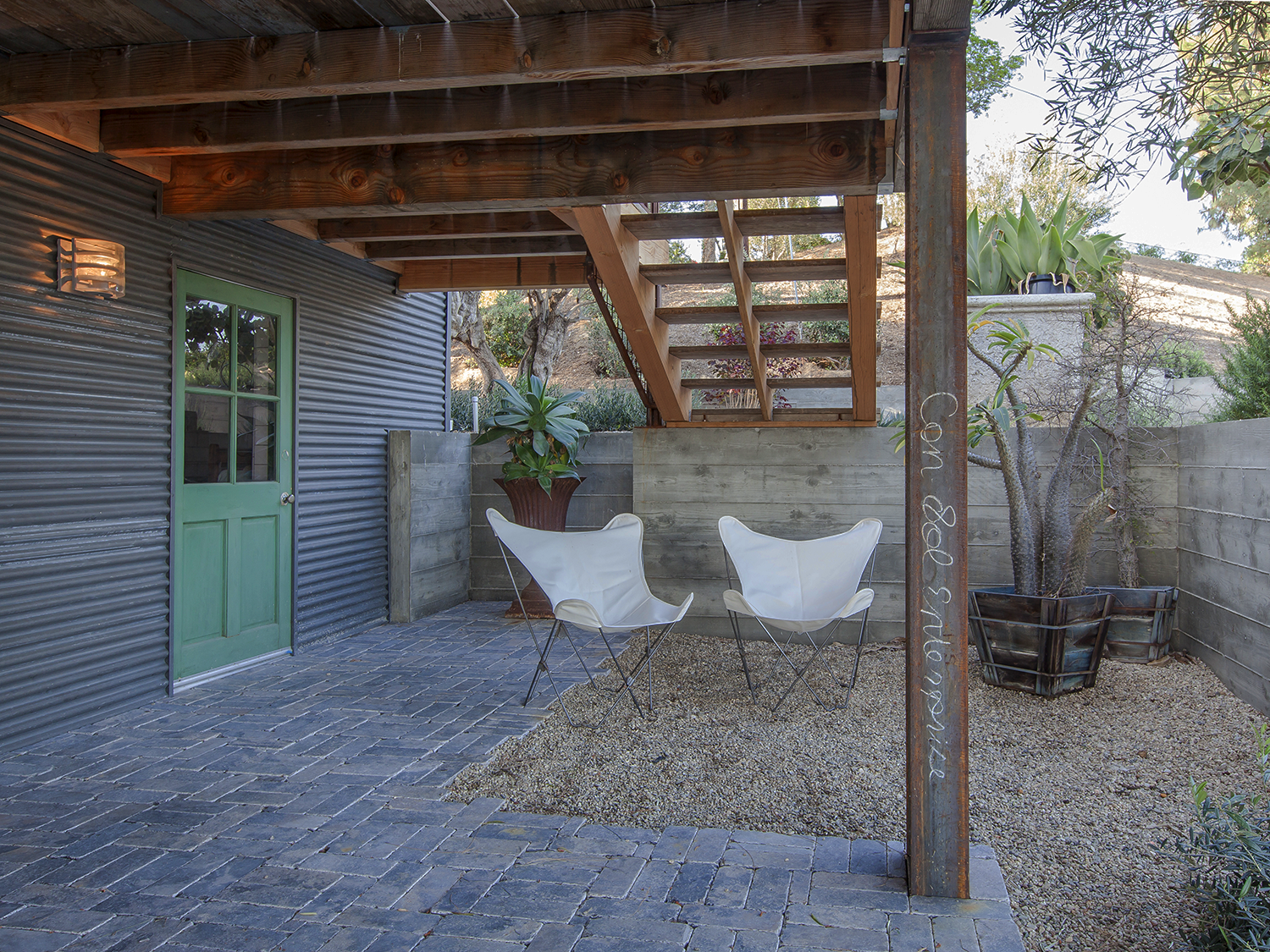 The story: an entrepreneur who spends her days in the city conceiving and managing high-concept restaurants and other creative real estate ventures needed a retreat. A place that would take her closer to the type of land that supplies her customers’ tables and that reflects her love for wide-open spaces. Cue: Somis, CA. The 70’s-era stuccoed house on a working avocado ranch she found there was dated and in need of extensive renovation, but the site’s rural location and sweeping views of surrounding alluvial farmland offered more than enough potential to fulfill her vision.